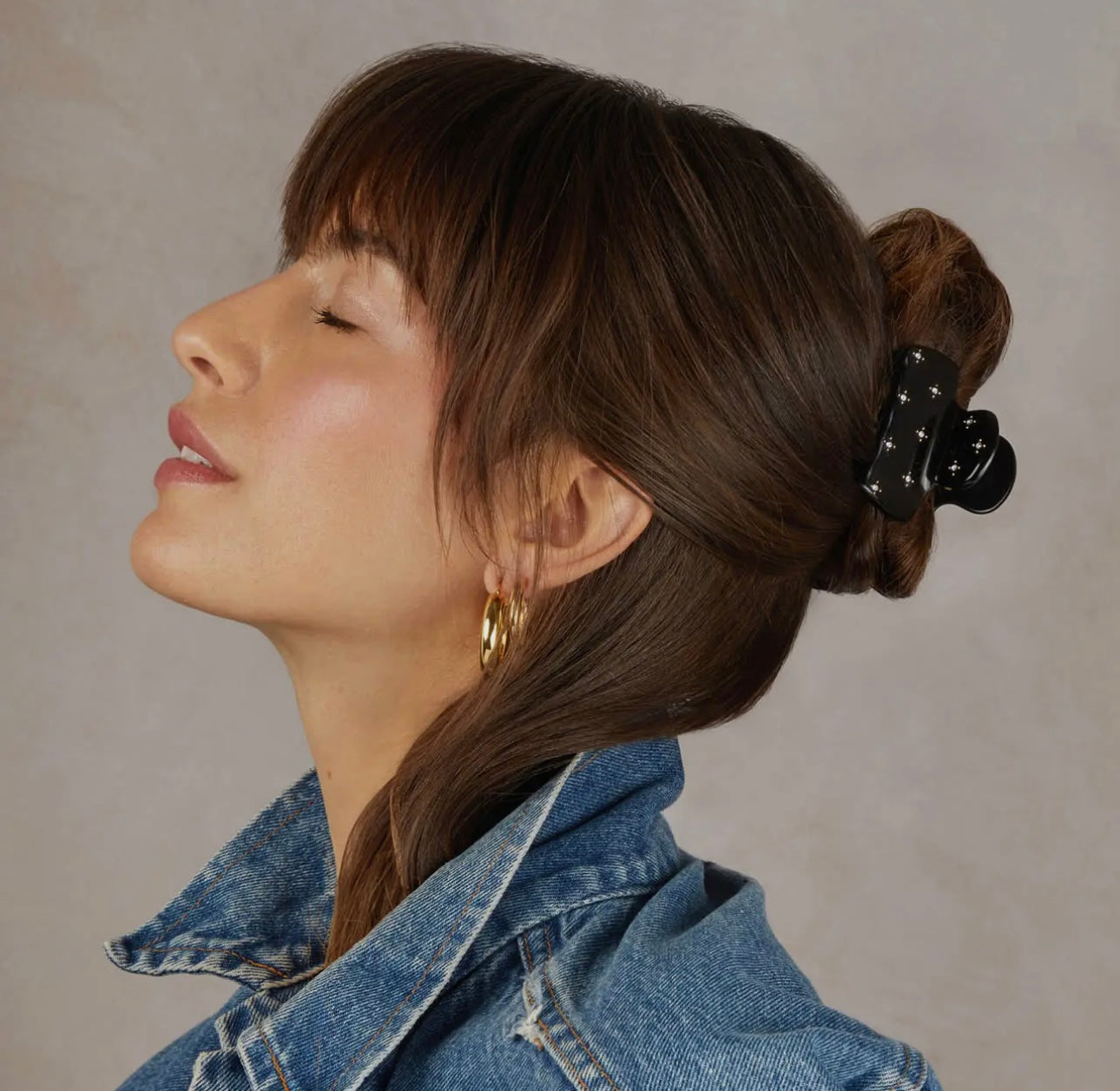 Kitsch Recycled Plastic Rhinestone Medium Puffy Claw Clip - Black