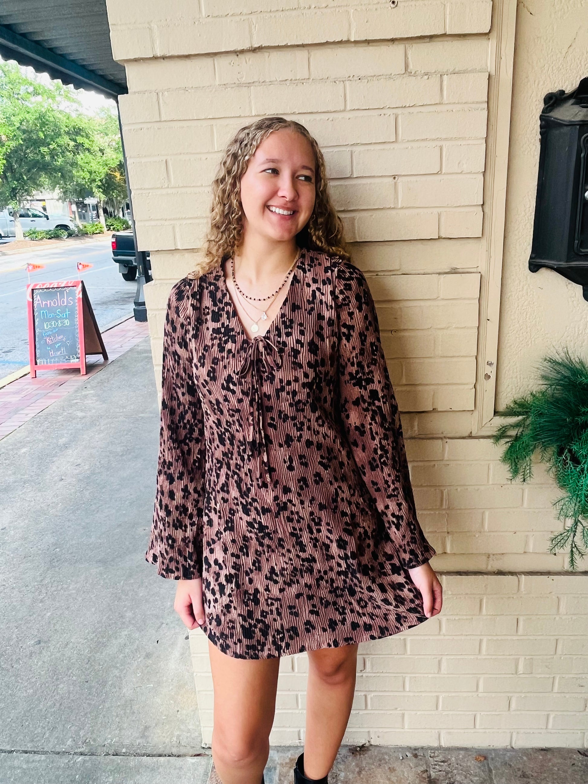 Leopard Pleated Dress - Mocha