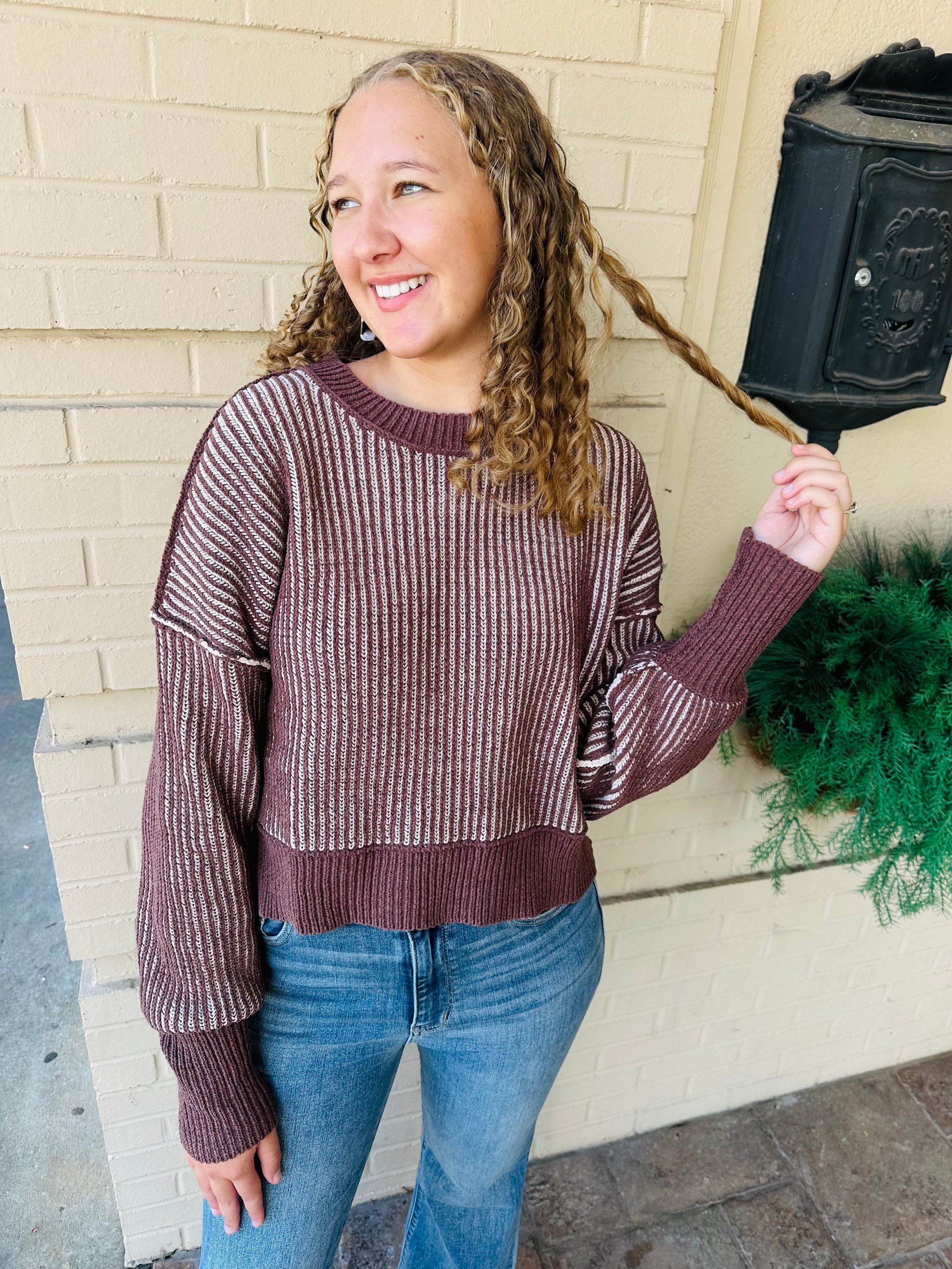 Striped Sweater Top - Chocolate