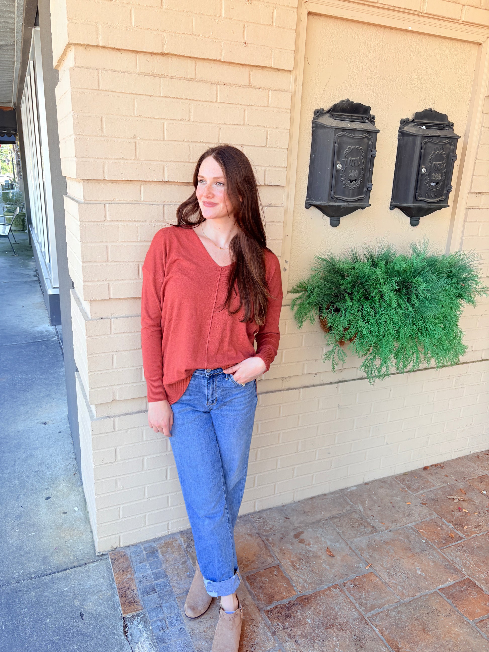 Super Soft Front Seam Sweater - Rust